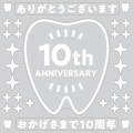 「デンタルアイコン」のアニバーサリーシールです。シンプルな歯のアイコンでシックに開院のお祝いをします!