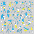 スポーツの秋!みなさん身体を動かしてますか!「レッツプレイスポーツ」はさまざまなスポーツをするイラストがたくさん入ったウィンドウシールです。それぞれのスポーツの教室や用品店におすすめです。もちろん、秋だけでなく、他の季節にもおすすめです。