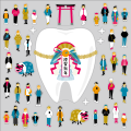 お参りした人は歯がキラッとすると評判!? 『歯つもうで』は御神体の歯をお参りに行く人々のデコレーションシールです。ウィンドウにランダムに貼れば賑やかなお正月を演出できます。