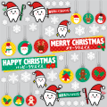 かわいい歯のキャラクターたちがサンタ帽子をかぶってハミガキを楽しく啓発するクリスマスバージョンのデコレーションシールです。クリスマスのオーナメントが加わって賑やかな装飾を演出します。