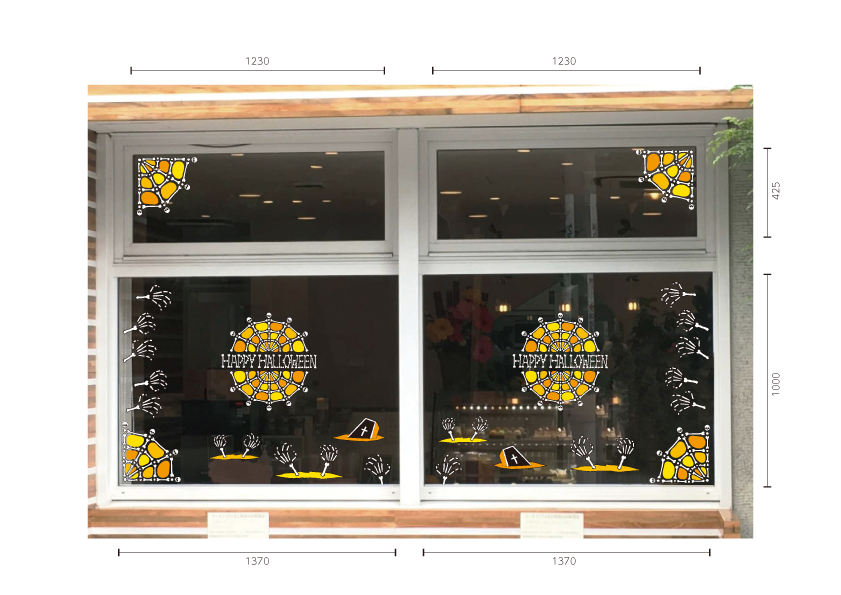 骨で象ったHAPPY HALLOWEENが特徴のハロウィン用タイトルシールです。 DH19014との組み合わせで独特のハロウィン感を演出します。