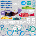 子供服のSALEにいかがですか? こどもの日のSALEを素敵に盛り上げる店舗装飾シールです! SALEシールを貼らなければ、子供の日の装飾にどんな場面でも使えます。