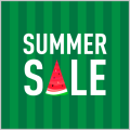 すいかの縦縞をイメージしたセールタイトルです。 Aの文字を模したすいかのカットがワンポイント!