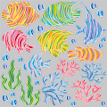 涼を感じる色鮮やかな魚のデコレーションシールです。貼る場所を気にせず、ランダムに貼って楽しめます。模様のような表現なので、いろいろな店舗の雰囲気にマッチします。
