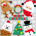 クリスマスのサンタクロースやトナカイを四隅に大きくポイントにインパクト抜群の装飾シールです。商業施設や保育園、小児歯科など、エントランスのドアにおすすめのシールです。