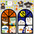 歯を磨かない子はいないかを探すために窓から家の中を覗くモンスターたちのデコレーションシールです。歯医者さんのハロウィンの装飾におすすめです。