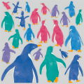 ショールームをペタペタと見学しているカラフルなペンギンです。大きいサイズを下の方に、小さいサイズを上の方に貼って奥行き感を表現できます。ショッピングモール、自動車販売店などにおすすめです。