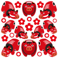 疫病除けや魔除けのお守りとして親しまれている赤べこの壁用デコレーションシールです。お正月時期に限らず、和雑貨店や和菓子屋の装飾など幅広くお使いいただけます。