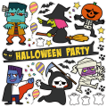 カラフルなコミック調のモンスターたちがハロウィン気分を盛り上げる壁用デコレーションシールです。