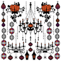 ハロウィン仕様のシャンデリアとオーナメントの壁用デコレーションシールです。