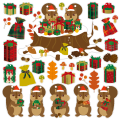 クリスマス、それぞれプレゼントを持ち寄るリスたちの壁用デコレーションシールです。待合室やキッズスペースの壁におすすめです!